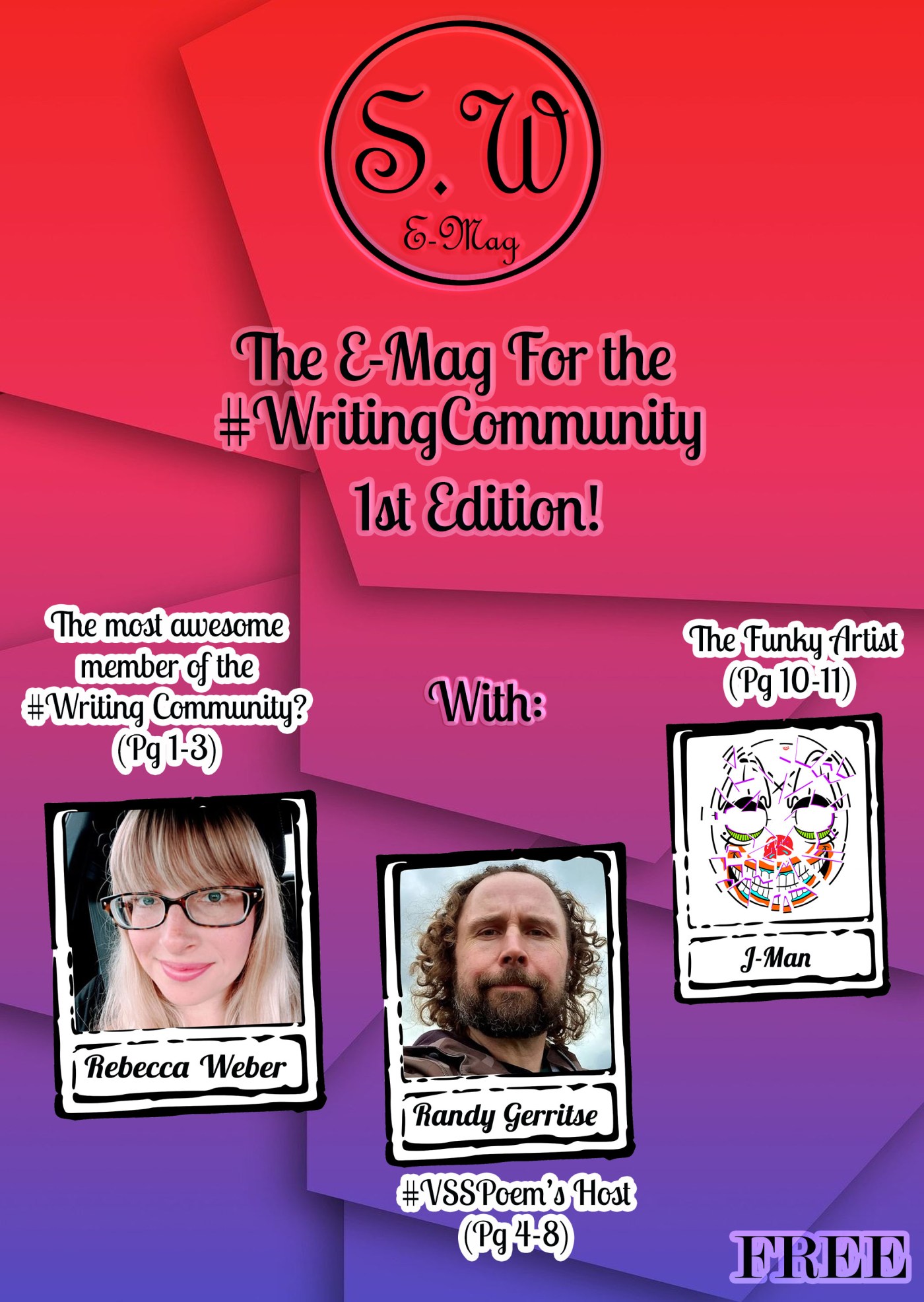 The FIRST edition of our E-mag for the Twitter’s #WritingCommunity, featuring the amazingly cool Rebecca Webber, the always light and jovial VSSPoem Host and Author of the AMAZING poetry book- The Rhythm of Life, Randy Gerritse, and one of our favourite artists, J-Man!