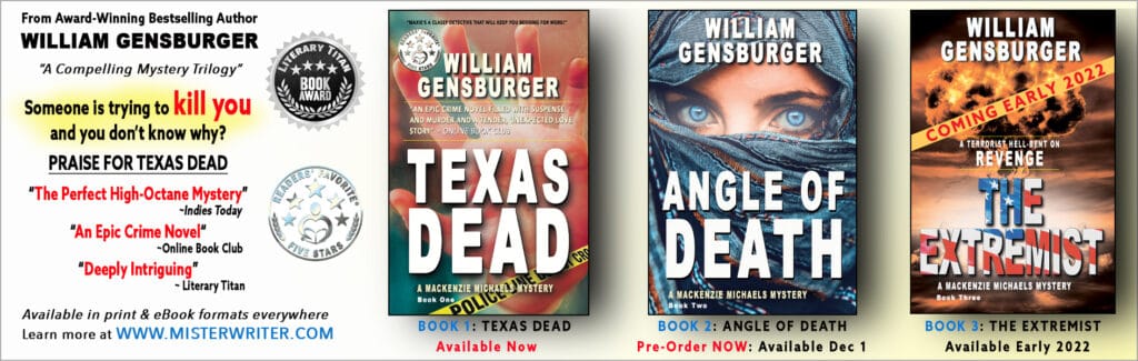Once again we congratulate William Gensburger for the EXCELLENT social commentary he brings forward in his books. Lovely work right here, and we can’t wait to read the third book, “The Extremist” because, it focuses on this great and determined villain, Hassan.