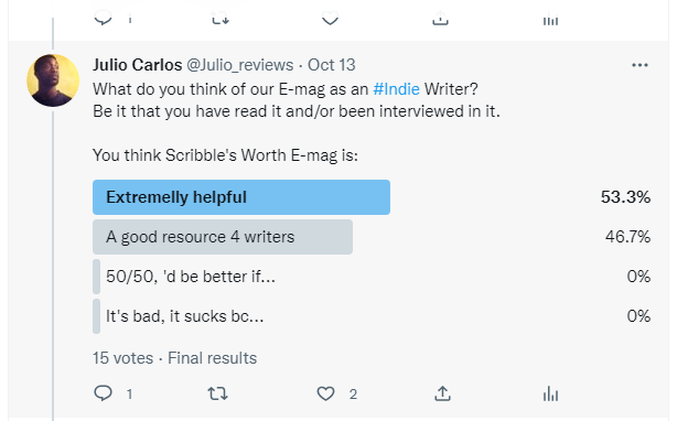 That’s the question. We have been putting our our E-mag for 18months straight now, and have had more than 40 writers interviewed in it in order to give their advices, experiences and mistakes, so other writers can learn and improve their craft.