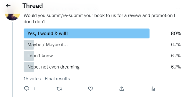 Thank you for trusting us with the review and promotion of your books. If you have any ideas, complaints or suggestions, please DM me at @Julio_reviews at any moment. I will reply ASAP. Cheers!