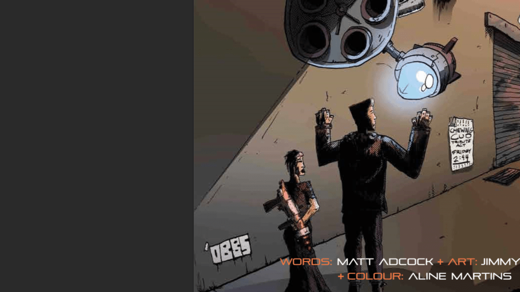 We have not one but TWO new artists on this, before we tell you how amazing a job they did with “What Waits For Us In The Dark (Matter)” , we must invite you to read, and get your copies of the previous books and comics! Don’t worry, we reviewed them all (click here for reviews), and talked about them with the author, the one and only, Matt Adcock in our interviews with him (click here to see them), so enjoy and join the party.