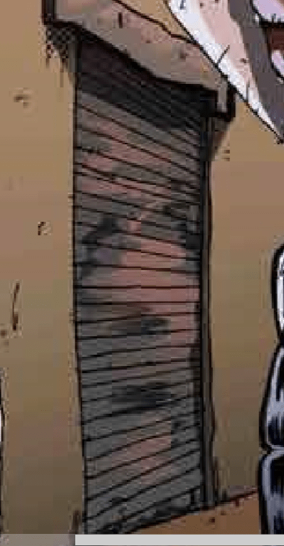 See how the light of the fire on the background creates a lighter tone on the wall, and then the screen of the robot that is illuminating our characters makes it get darker? If you zoom in you can see the way light waves are created by that, and each wave gradually grows to a lighter tone of the same colour. And then if you look closely, you can see that the light of the cannon of the robot creates another patch of light tones in that zone?! THAT my friends, THAT is paying attention to your job and being fucking good at it. Mad respect to Aline Martins for the colours here. Remarkable!!!!