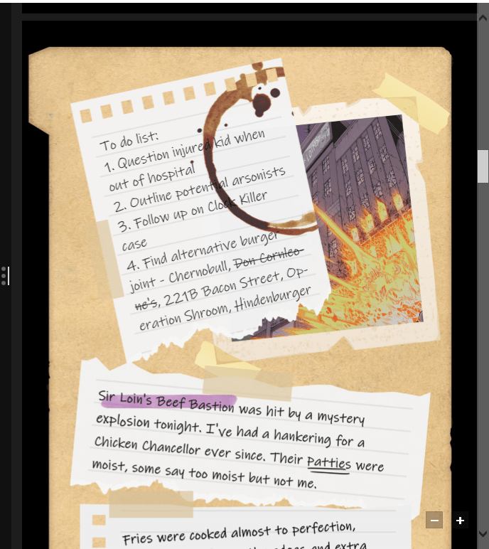 I will say that besides (mostly) the main characters, every other non-villain is a comedic punch line, which makes this comic extremely enjoyable to read, but there is one character that deserves the trophy of absurdity, and that is Detective Hunting. That man is worthless at everything and makes no sense at all. For a detective he has no clue at all of what is happening nor why, and his conclusions are always misdirected to the wrong side. House bush fires? “People should water their plants more often“, not some arsonist, not some prankster, but dry plants. HAHAHHAHAH, and then you will read the moist buns references, hahhahahhhha, priceless!