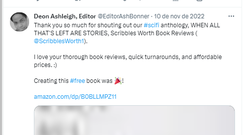 I was most appreciative of the reviewer picking up on the purpose and meaning behind the stories and the subtle hints embedded into the narrative in order to set up a potential sequel (and without giving any spoilers!). If you want a detailed and honest review of your work, I highly recommend Scribble’s Worth!