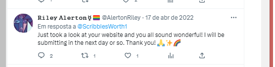 “For my fellow authors who have a book out, if you’re looking for some promotion of your work, check out Scribble’s Worth Book Reviews. They promoted my work after an interview (with passion). They has very reasonable fees for their professional services.”