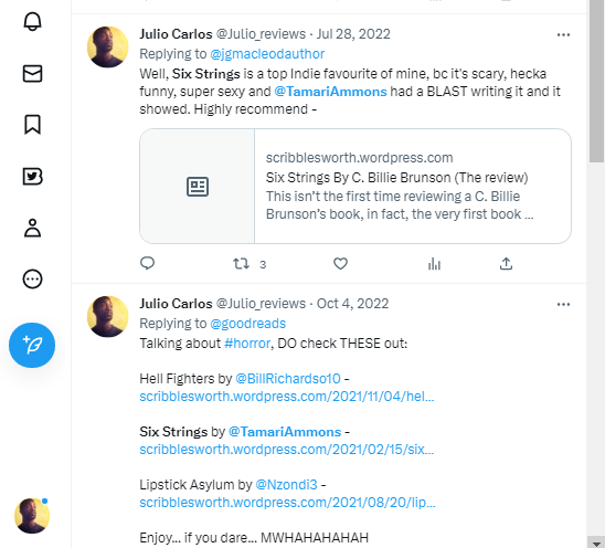 “I’m biased because they enjoyed the three titles reviewed on Scribble’s Worth, but I enjoyed their conversational review style for its infectious enthusiasm and ability to sum up a book’s narrative without delving too much into spoiler territory. The team puts the points across succinctly and they don’t shy away from constructive criticism. I definitely intend on utilising Scribble’s Worth to boost the signal the next time I have a launch.”