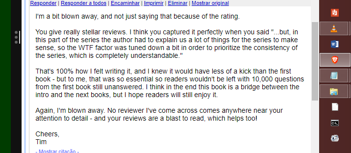 And the reviews I got blew me away. The attention to detail from the book without spoilers was much appreciated, and the reviews themselves were both fair and raw. One review in particular had me laughing for hours, both because the reviewer so perfectly captured how I hoped my readers would feel after reading Rise of Dresca, and because the language used was so hilariously honest and… human. No grandiose language, no using the review as an opportunity to languish over personal tastes and literary preferences – just crisp and honest “this was awesome and let me tell you why.” And whether a review concludes a book is good or bad, I think this sort of raw honesty is something real readers are looking for and will appreciate.”